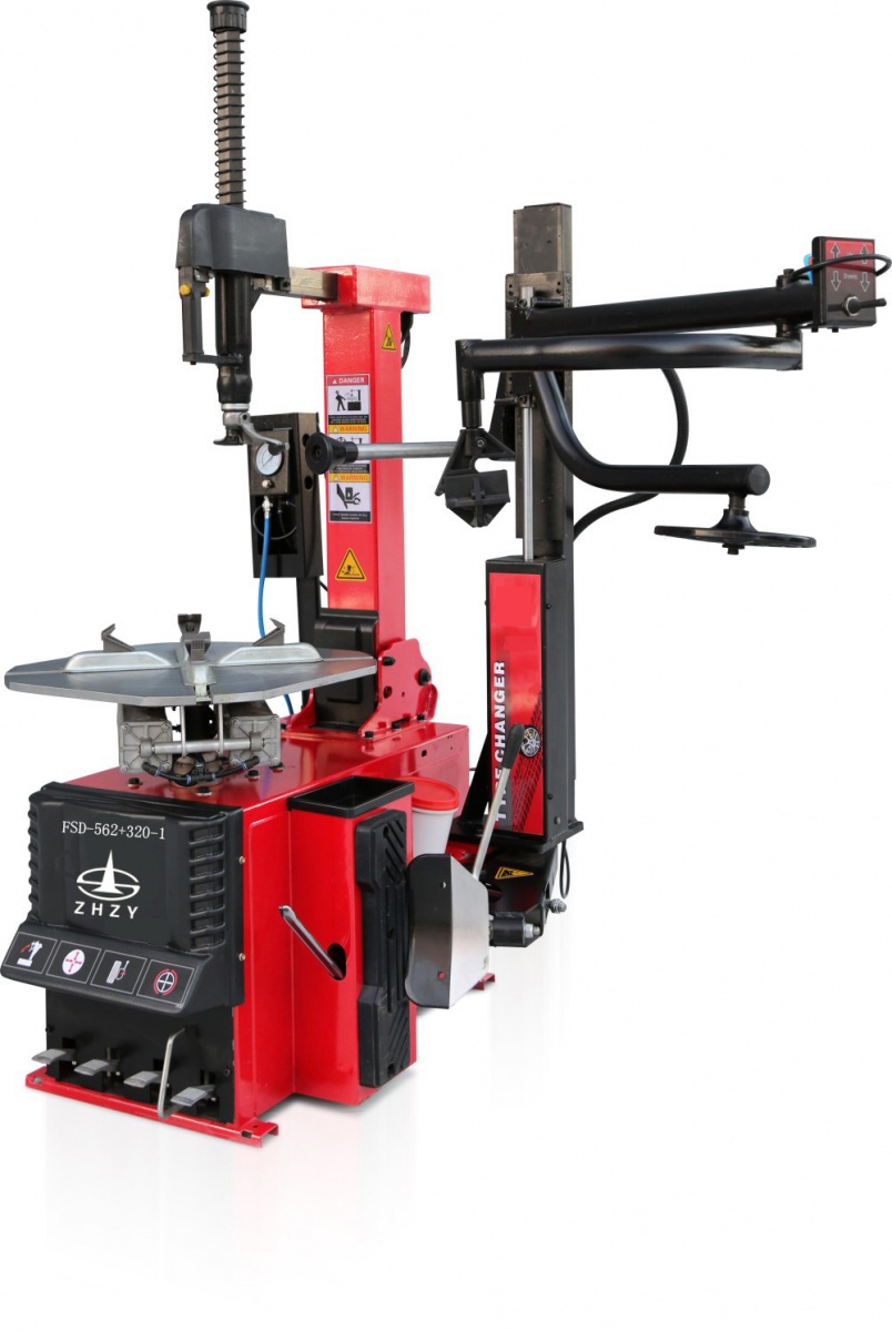 本品為自動后傾式扁平輪胎拆裝機,配有自動擺臂式助力裝置,氣動鎖緊裝置。