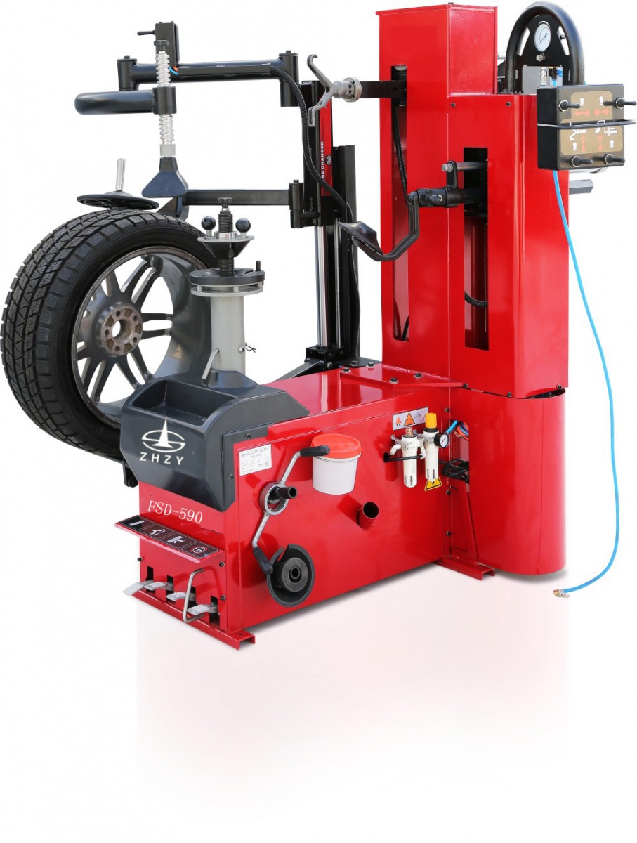 本機(jī)為電氣一體化的自動輪胎拆裝機(jī),配有羊角勾頭(勾頭自動翻轉(zhuǎn)、自動進(jìn)退);自動擺臂助力裝置;氣動自動鎖緊裝置;壓輪機(jī)械受壓變角裝置;左側(cè)又配有光軸定位裝置,能使方臂無間隙,無擺動,拆卸輪胎輕松自如。