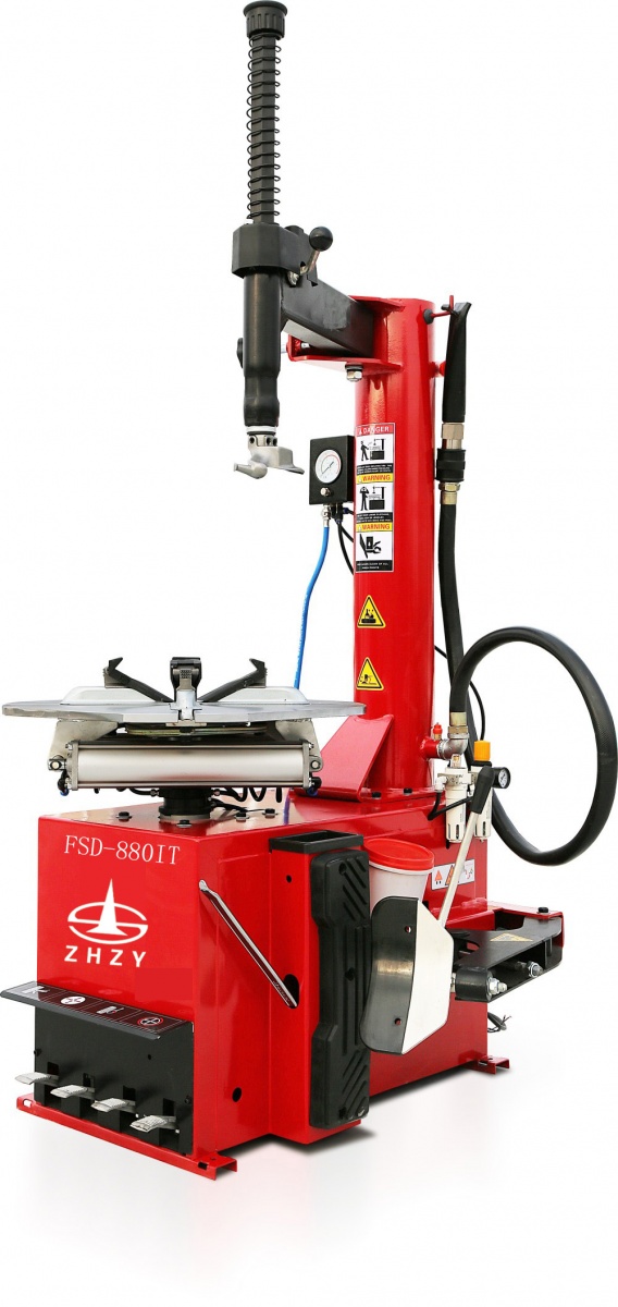 采用半自動橫向擺臂拆裝輪胎。