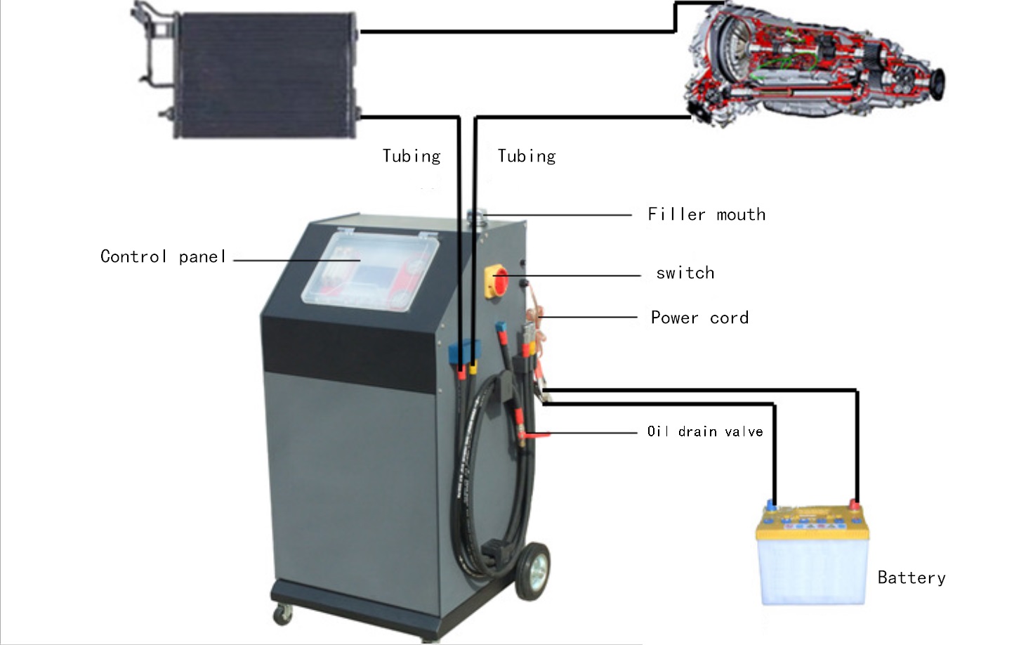 使用本機簡單方便。操作時只需選擇快速接頭把換油機與自動變速箱進行簡單連接就可以進行清洗和換油。