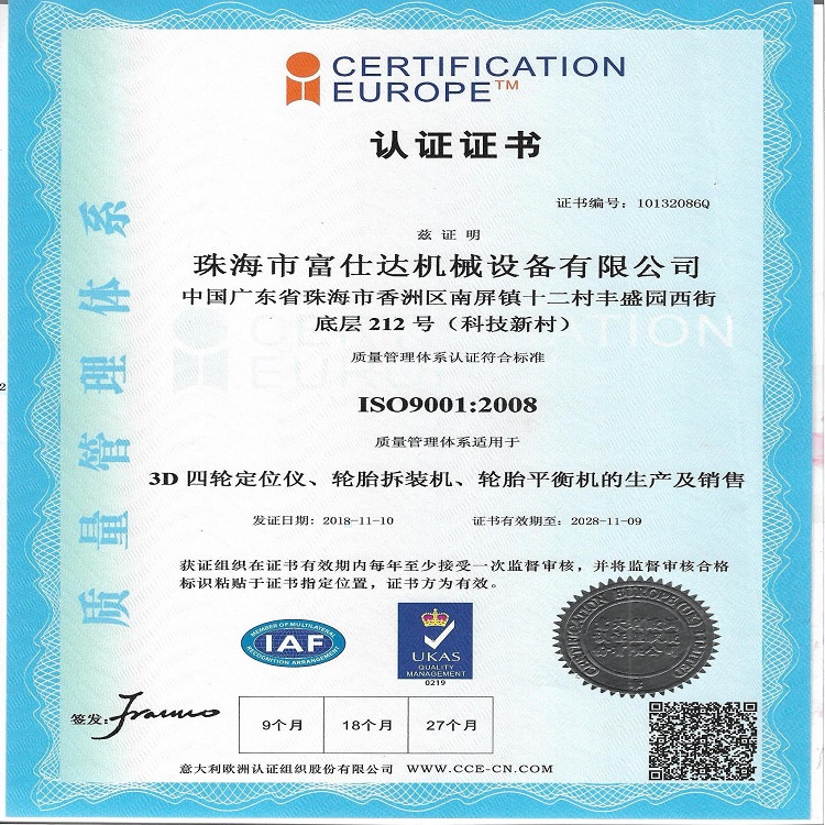 珠海市富仕達機械設備有限公司,成立于2006年3月,它座落于美麗的海濱城市廣東省珠海市,公司距離珠海輕軌站僅5000米,距離進入澳門的拱北口岸、灣仔口岸僅5000米,距離珠海機場20公里,距離九洲港僅10公里,路海空交通相當便利,它是一家專業(yè)從事汽車維修檢測設備的生產(chǎn)企業(yè),公司配備有一批專業(yè)技術一流人才,常年至力于高新技術產(chǎn)品的研發(fā)和生產(chǎn),企業(yè)建立了完善的管理體制;產(chǎn)品注冊商標“ZHZY(戰(zhàn)鷹)”、“ZHZF(戰(zhàn)峰)品牌,產(chǎn)品已通過ISO9001:2008質量管理體系認證及歐盟CE認證;它是國內較早致力于汽車診斷、檢測、養(yǎng)護產(chǎn)品的研發(fā)、生產(chǎn)和銷售的高科技企業(yè)之一。公司成立以來,從國外引進了先進的技術及人才,通過自主研發(fā),形成了自主知識產(chǎn)權系列產(chǎn)品,目前公司擁有六項3D四輪定位專利技術及軟件著作權,主要產(chǎn)品是富仕達系列-“戰(zhàn)鷹ZHZY”、”戰(zhàn)峰ZHZF“品牌3D汽車四輪定位儀、及富仕達系列全自動汽車輪胎拆裝機、汽車輪胎平衡機、汽車修理舉升機、汽車大梁(車架)校正儀、LED電視、全自動化洗車機、汽車保修及保養(yǎng)類系列高科技產(chǎn)品。產(chǎn)品遠銷國內外,在國內有完善的國內市場網(wǎng)絡系統(tǒng), 產(chǎn)品遠銷俄羅斯、加拿大、美國、澳洲、巴西、德國、意大利,目前正在不斷拓展國內及國際市場,歡迎海內外朋友來公司參觀指導。