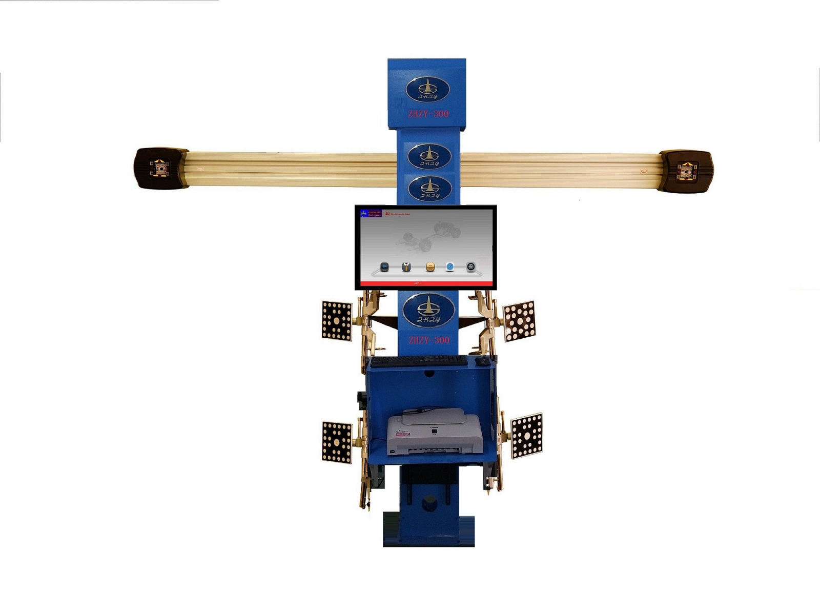 1. Product structure features: 19-inch integrated structure of inorganic cabinet, four-millimeter square-pass surface of high-strength alloy material is used for column treatment to blue, WING7-61is used for operating system, and the operation is very simple. The product is equipped with software operation video, four-point fixture is directly suspended on the two sides of the column, and the height of the column is adjusted and fixed when it is easy to install; 5 million Sony cameras are used for camera importation. Pixel lens system, processing speed is 30 sheets per second, reflective plate shell is made of aerospace aluminium alloy material, dynamic vision algorithm technology, software operation is simple, fast reading data; three-dimensional dynamic display image operation guide operation; rolling compensation, short-distance trolley, wheelbase difference, accurate detection data, real-time monitoring of the standard four-point splint. It can check 10-23 inch rim with simple maintenance and no need of regular calibration. Aluminum alloy turntable is convenient to check the basic parameters of direction and front wheel bundle inclination. Super database is free to update database documents once a year. The products are certified by ISO quality system and EU CE safety certification.